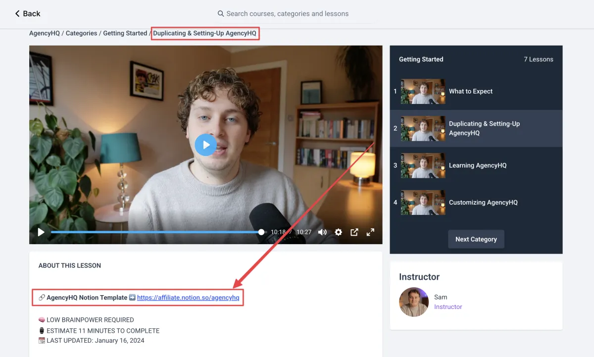 The AgencyHQ template link can be found inside the second lesson within the AgencyHQ course. It's called "Duplicating & Setting-Up AgencyHQ".